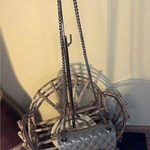 Macy's Gray Quilt Look PVC Shoulder Crossbody Bag