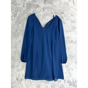 Macys Inc NWT Sheer Sleeve Dress XS Blue Tie Back V Neck Flowy