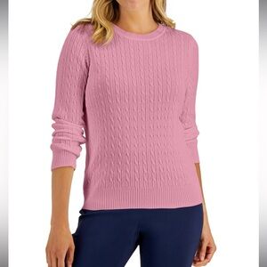 Macy’s Karen Scott Bubblegum Pink Cable Knit Academia Preppy Sweater Siz…