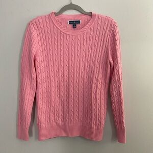 Pink, cable knit, 100% cotton, long sleeve, crew neck, pull over sweater. In like new condition. Comes from a smoke free home.