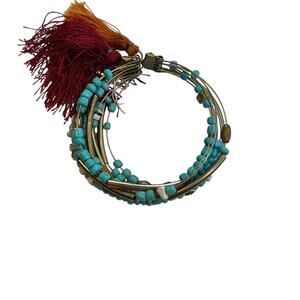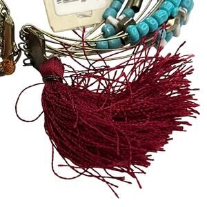 Macy’s Layered Bracelet w/ Gold, Red, & Turquoise Beads, Tassel Accents. NWT!