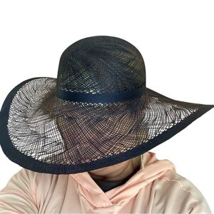 Macy’s Navy Blue Wide Brim Woven Straw Hat