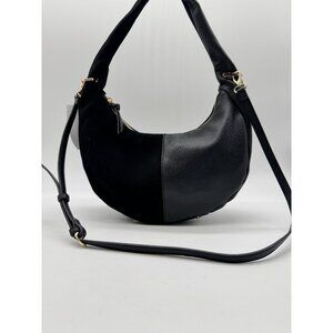 Macy's On 34th Harlowwe suede faux-leather top handle hobo crossbody bag -Black
