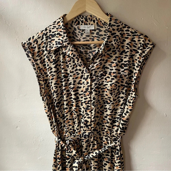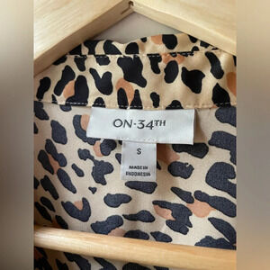 Macys On 34th Silky Animal Print Collared Versatile and On Trend Fall Style Size Small Excellent Condition Matching Belted Sash Chic Collared Neck with Breast Pocket Black Buttons Super Chic Lines for Your Capsule