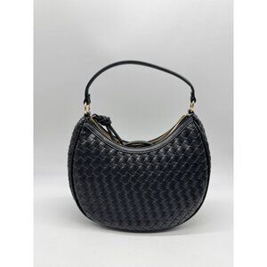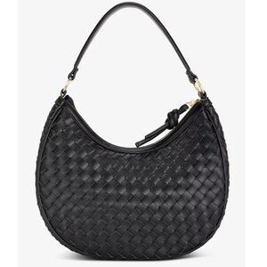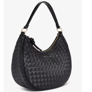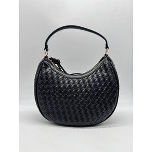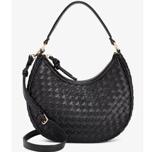 Macy's On 34th woven faux-leather shoulder hobo crossbody bag - Black