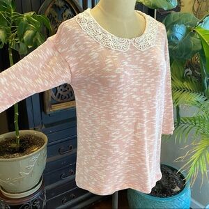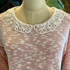 Macy’s Peter Pan lace collar sweater. Heather pink & cream mix knit.