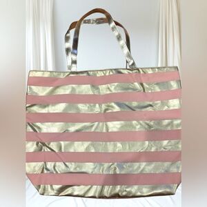 Macy’s Pink Gold Striped Tote Beach Bag