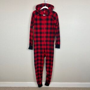 Macy's Red Fleece Plaid Printed One-Piece - Size Medium