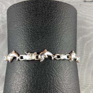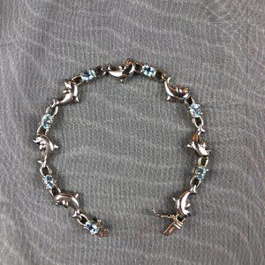 Sterling Silver 925 & Aqua Marine Dolphin Bracelet. Excellent pre-owned condition, no flaws or fading.