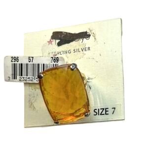 Macy’s Sterling Silver Ring w/ Large Orange Gemstone, Size 7, NWT!