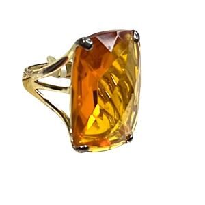 Sterling silver ring with large orange gemstone.
