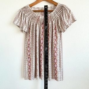 Macy's Style & Co Womens Top Pleated Neckline Stretch Relaxed Fit Paisley Sz S