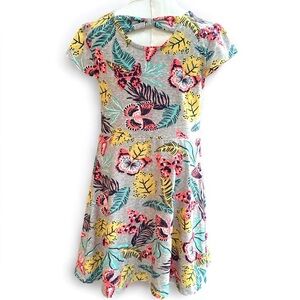 Macy's Tropical Pink & Yellow Vibrant Flutter Sleeve Fit & Flare Summer Dress 4T