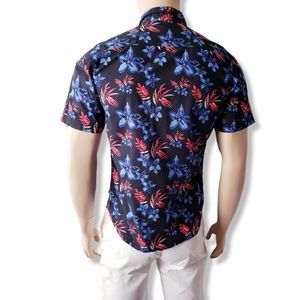 Macy's Univibe Black, Red & Blue Floral Print Short Sleeve Button Up Shirt
