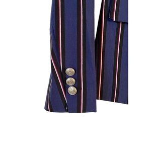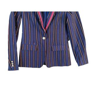Macys XOXO Womens Navy Blue Hot Pink Striped Blazer Preppy Career Stand Out M