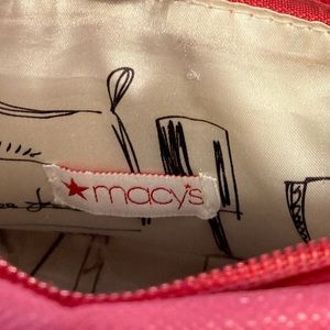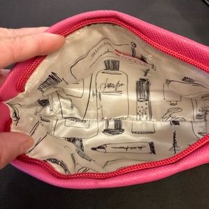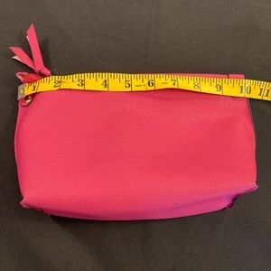 Measures as in pics. Perfect Pink bag, inside has black and white makeup design.