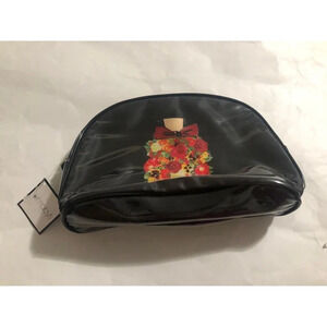 Macy's makeup toiletries cosmetic bag. Red on the inside Perfume bottle print covered with flowers.