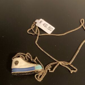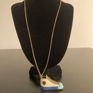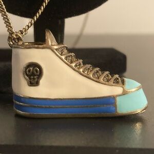 Macy’s necklace with cream and blue high top shoe!! 9A