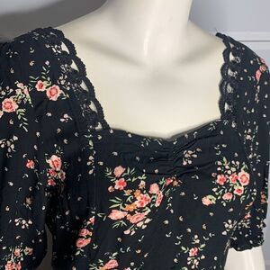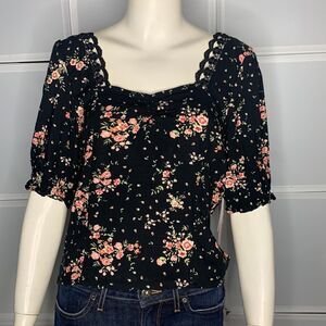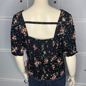 NWT. Macy’s x Crave Fame Boho Black Floral Crop Sweatheart Neck Top Size XL Juniors
