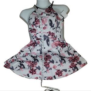 Nwt, speechless exclusively for macys. Wingy a line dress in beautiful pink/wine Grey gray floral print on white. Black halter strap w criss cross back. Sleeveless. Great dress for date night, school dance, wedding guest, summer vacation travel, spring break, school dance, special occasion. Check out my closet and bundle to save 💵. Offers always welcome 😊. Non-smoking cat friendly home 😻. Bookmark my closet as new items added weekly.