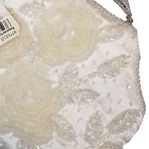 Macy's Women's Ivory Vintage Style Floral Snap Button Beaded Purse Small NWT