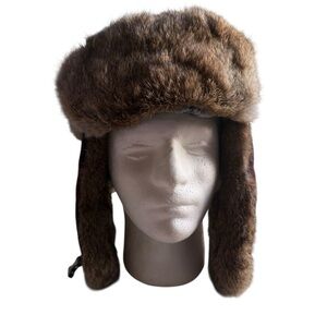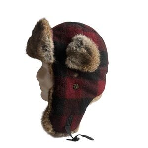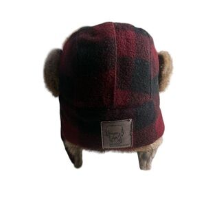 Mad Bomber Red Plaid & Real Rabbit Fur Trapper Hat With Ear Flaps L