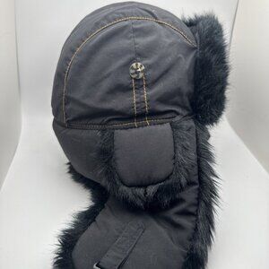 Mad Bomber Trapper Hat Cap Black Fur Gray Size Large