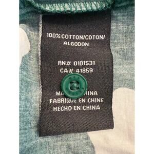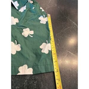 in excellent pre-owned condition. Crisp Cotton button up shirt with short sleeves. Deep Dark Green background and white shamrocks.