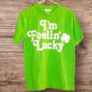Mad Engine St. Patrick's Day "I'm Feelin' Lucky" Green Clover Tee - Size M