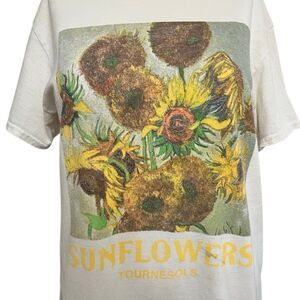 Cream t-shirt with sunflower graphic and 'SUNFLOWERS TOURNESOLS' text.