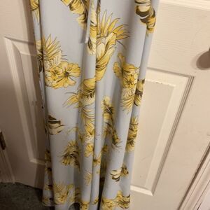 Mad For Love Blue With Leaves Jumpsuit light Blue/ yellow Size Small has Buttons on side of legs