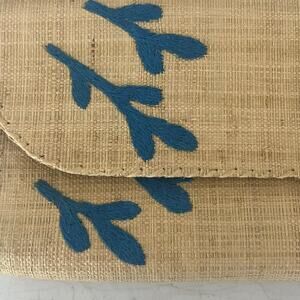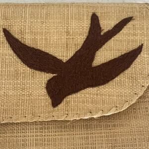 Mad Imports Clutch Handmade Madagascar Woven Straw Tan Embroidered Bird Leaf