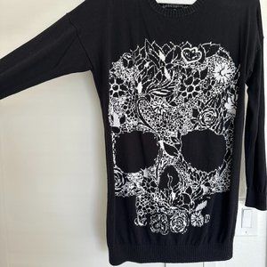 'Mad Love' black floral skull/skeleton long sleeve sweater -- can be worn as a sweater dress OR as an oversized sweater!