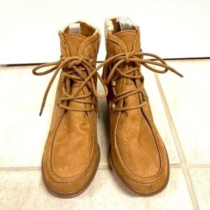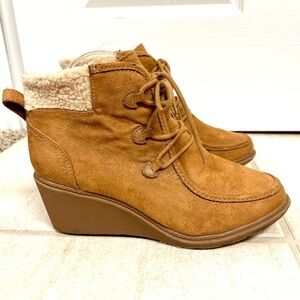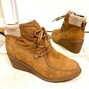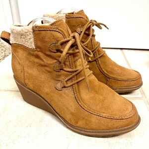 Mad Love Kensie Cognac Faux Suede Lace-up Wedge Ankle Boot Booties women’s 9.5M