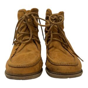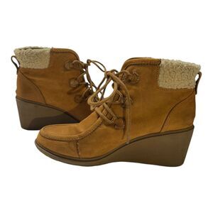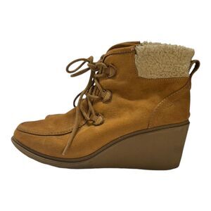 Mad Love Kenzie Cognac Faux Suede Lace Up Wedge Ankle Boots Booties Size 8