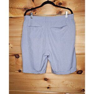 The Mad Pelican For Ur Eyes Only Donnie's Walking Shorts in Alloy, size Large, are perfect for casual occasions during the summer and spring seasons. These cargo-style shorts feature a zip closure, mid-rise fit, and a 8.5-inch inseam. Made from a breathable and quick-drying polyester and spandex blend fabric, they have a flat front design with a cargo pocket for added convenience. The unique Mad Pelican For Ur Eyes theme adds a touch of personality to these stylish shorts, making them a standout piece in any man's wardrobe. Machine washable for easy care, these shorts are a practical and fashionable choice for everyday wear.