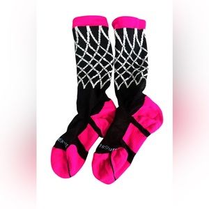 Pair of Hot Pink and Black Mad Sports Stuff Basketball Socks