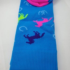 Mad Sports Stuff Neon Blue Wild Horses Over the Calf Socks S