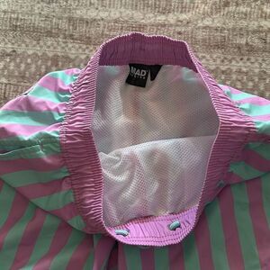 Mad engine Men’s Size Small Blue and pink Striped Swim trunks NWT