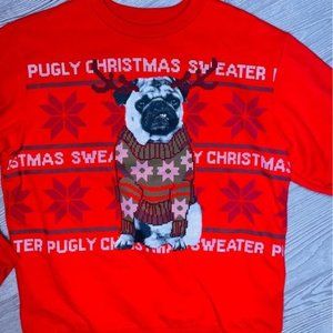 Mad engine Ugly Christmas Sweater Red Pug Dog PUGLY Sweatshirt Mad Engine s/m ugly Christmas sweater