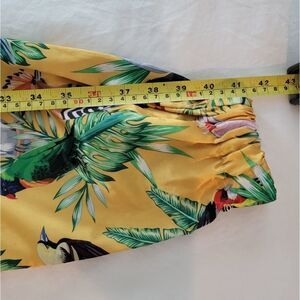 L 41, inseam 21, Waist 15. Note the measurements because these could be for Men or Women. Thick, Silky feel with wide elastic bands at waist and ankle. EUC. Fun tropical birds print. Make a great beach Pant too.