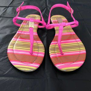MadLove Striped Sandals Pink/Yellow/Tan Adjustable straps Size 5/6