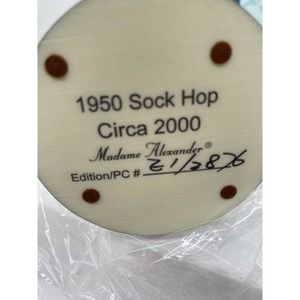Madame Alexander "1950 Sock Hop" Poodle Skirt Circa 2000 Figurine NIB COA 90650. Details on this figurine are stunning. From the Poodle skirt to the record she stands on. Nice gift for a collector or add to your own. Makes a cute little girls room decor as well.
