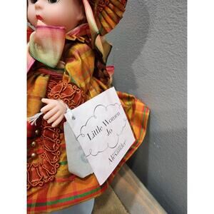 The Madame Alexander Doll "Jo Little Women" is an 8" play doll with red hair and braids. Made of plastic, this original doll was manufactured between 2000-2009. It does not come with a box, and is not a vintage or antique piece. This girl doll from Madame Alexander is perfect for collectors or children who enjoy playing with dolls, adding a unique touch with its light complexion and detailed features.
