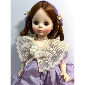 This Madame Alexander doll from the Opera Series features exquisite detailing, with a delicate lavender dress and lace accents. It includes the original box, making it a prized collectible for enthusiasts and collectors. The doll's design reflects elegance and craftsmanship, embodying timeless charm.