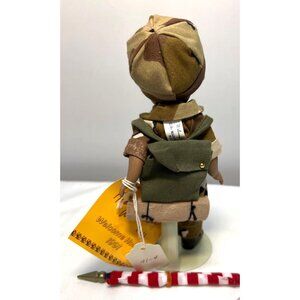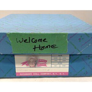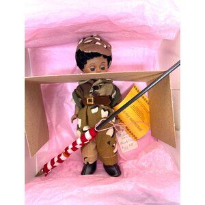 This Madame Alexander collectible doll is dressed in a detailed camouflage outfit, perfect for display or collection. The doll includes a Welcome Home Flag and comes in an original box, making it a thoughtful gift for doll enthusiasts.