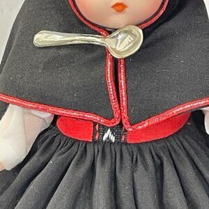 Madame Alexander restrung 8" Peru doll with stand. No box. Her eyes open and close easily.