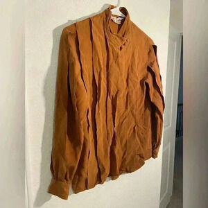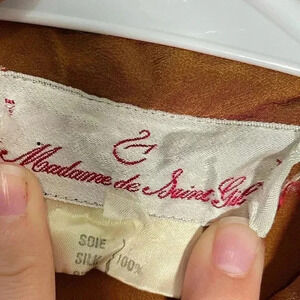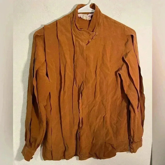 Madame de Saint Gil Vintage Caramel Brown Layered Silk Long Sleeve Blouse Sz 40