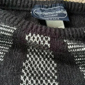 Madamesielle oh wow, vintage 80s black metallic silver art deco sweater M