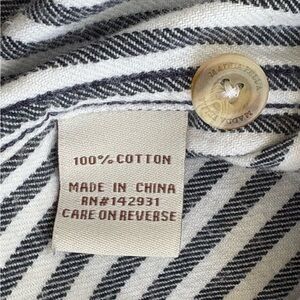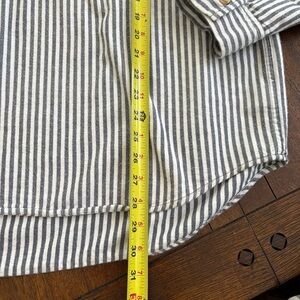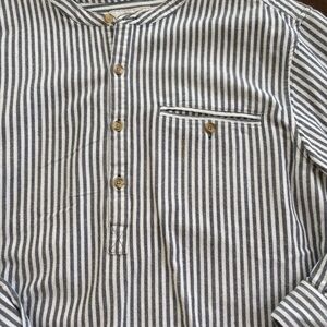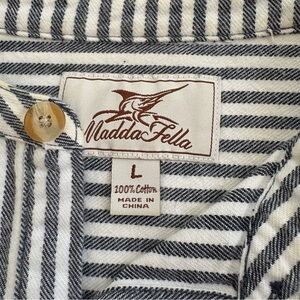 Madda Fella Castaway Striped Collarless Shirt Mens L 100% Cotton Blue White